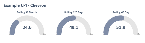 After these adjustments are taken into account, the CPI is computed as a combination of the commodity share, the total variance of the equity price action explained by the model, and a statistical significance penalty. The CPI is computed independently for each time period, with the 36M rolling measure being the most significant for fundamental investors, as it is the time frame over which corporate actions have the greatest impact on corporate fundamentals.